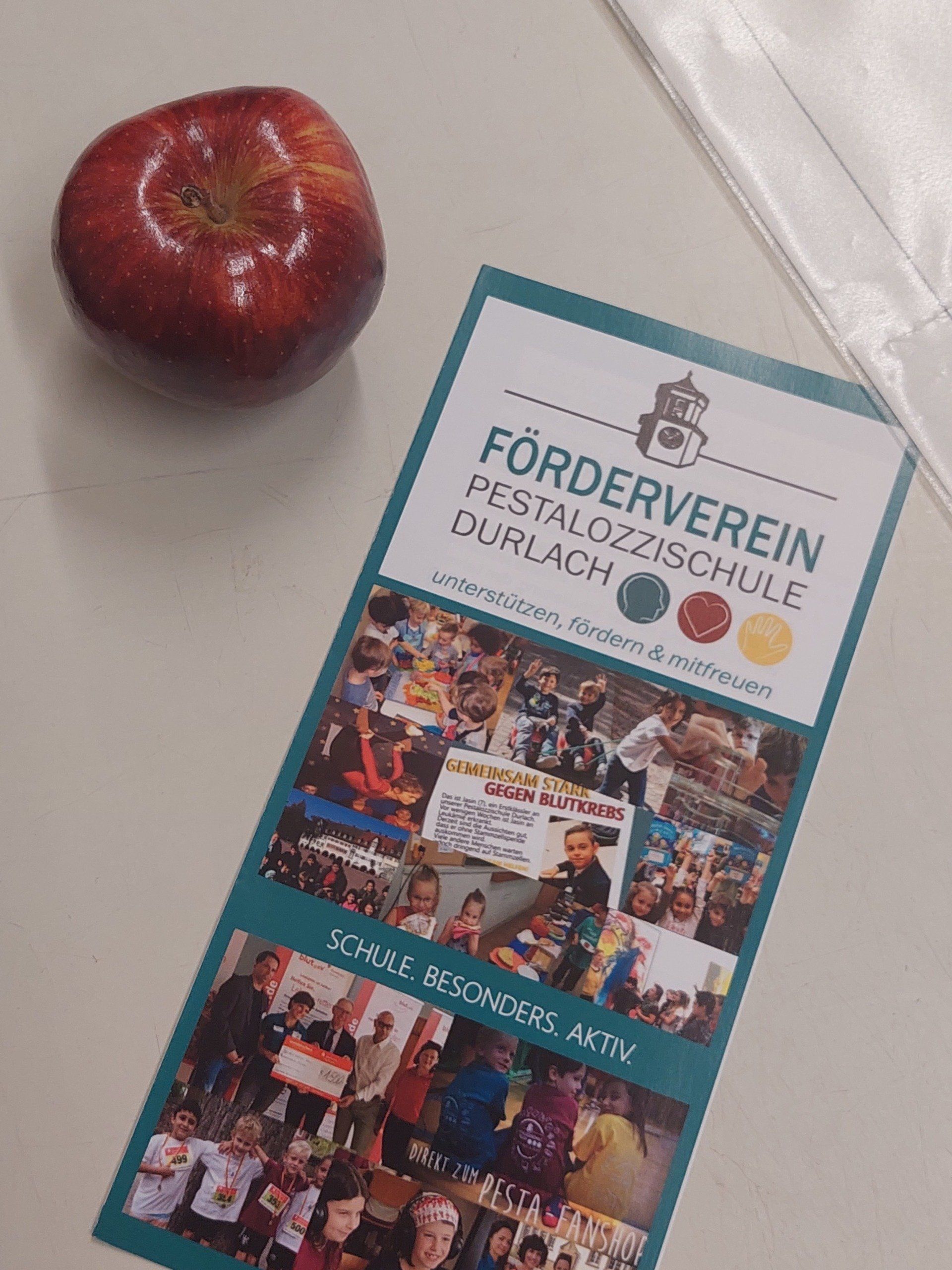 Als Präsent gab es neben Äpfeln und Birnen auch ein T-Shirt des Fördervereins für alle Erstklässlerinnen und Erstklässler sowie für die Kinder der Vorbereitungsklasse der Grundschule.