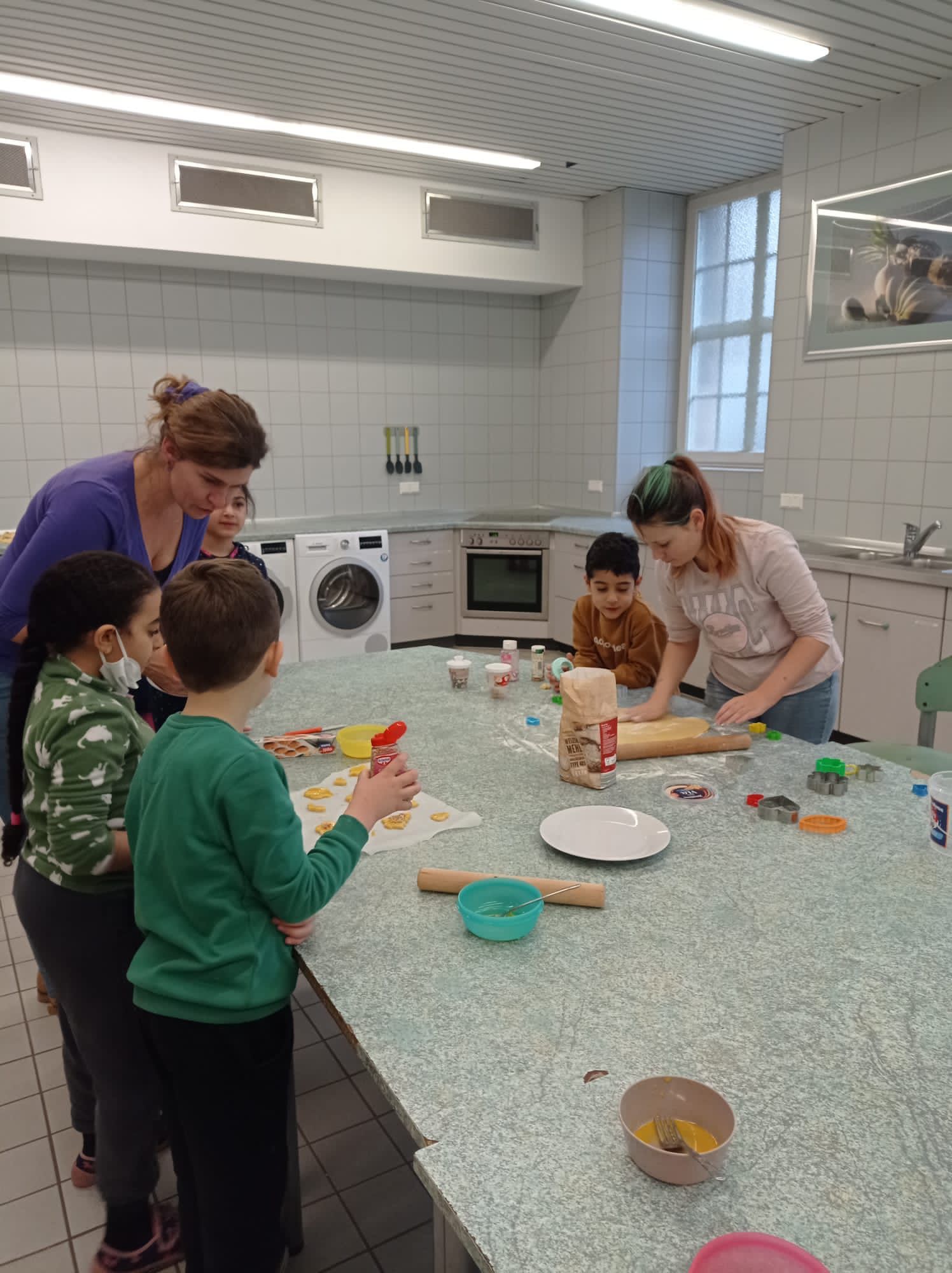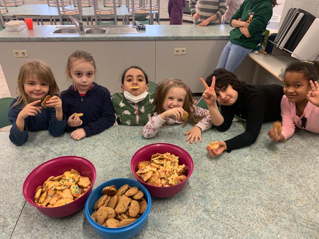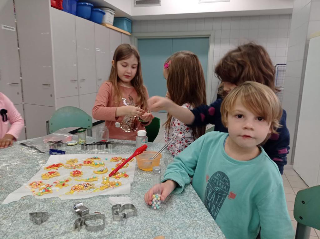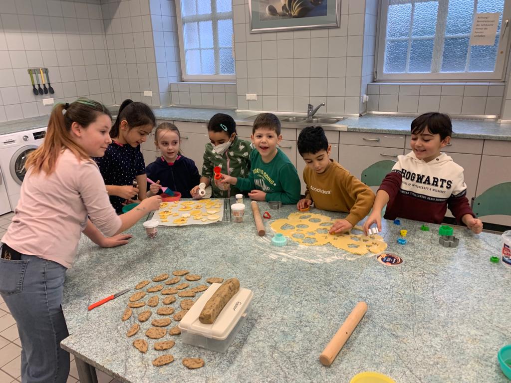 Die Klasse 1c hat zusammen viele leckere Plätzchen gebacken. Gemeinsam wurde eifrig ausgestochen, dekoriert, aufgeräumt und manchmal auch genascht.