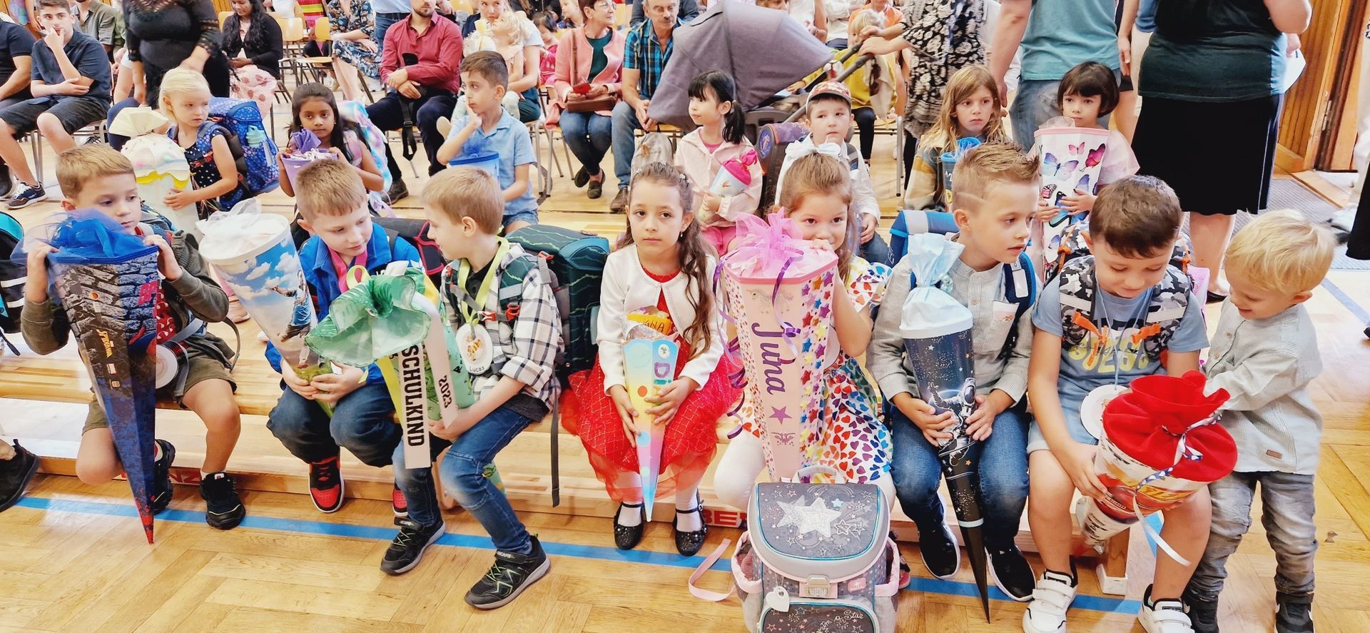 Am 13. September fand die Einschulungsfeier für unsere Erstklässlerinnen und Erstklässler statt. Die Schülerinnen und Schüler der Klasse 2 bereiteten ein Programm vor, um die neuen Schülerinnen und Schüler an der Pestalozzischule willkommen zu heißen.