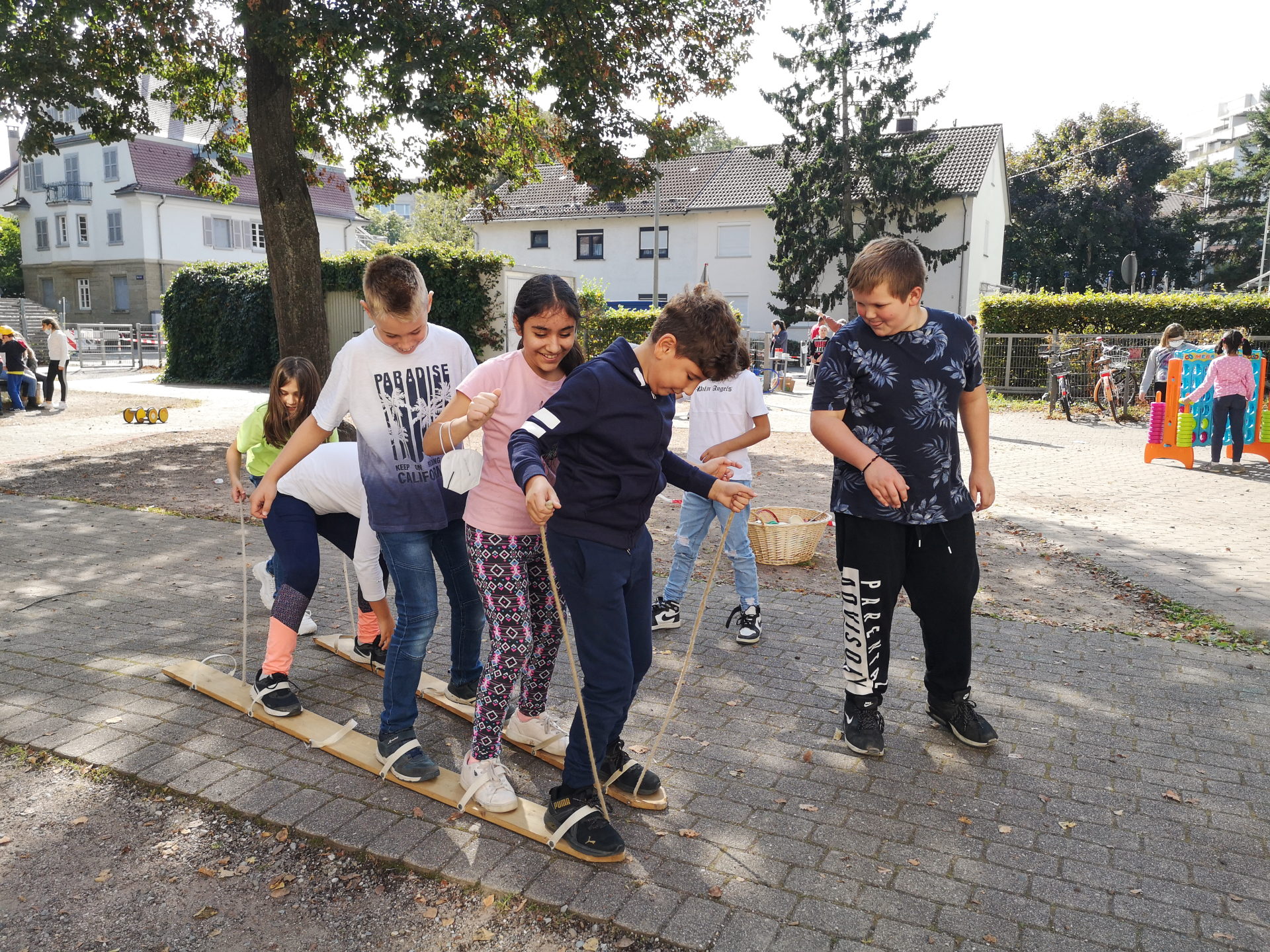 Bewegungsangebote in den Pausen werden durch Spielekisten unterstützt, die jeder Klasse zur Verfügung stehen. Ebenso finden Bewegungsangebote auch während des Unterrichts Berücksichtigung, denn Bewegung und Sport fördern Lern- und Gedächtnisprozesse und verbessern die Konzentrationsfähigkeit. Damit beeinflussen sie die Qualität von Schule insgesamt positiv und verbessern Unterrichtsprozesse und damit auch das Schul- und Klassenklima.