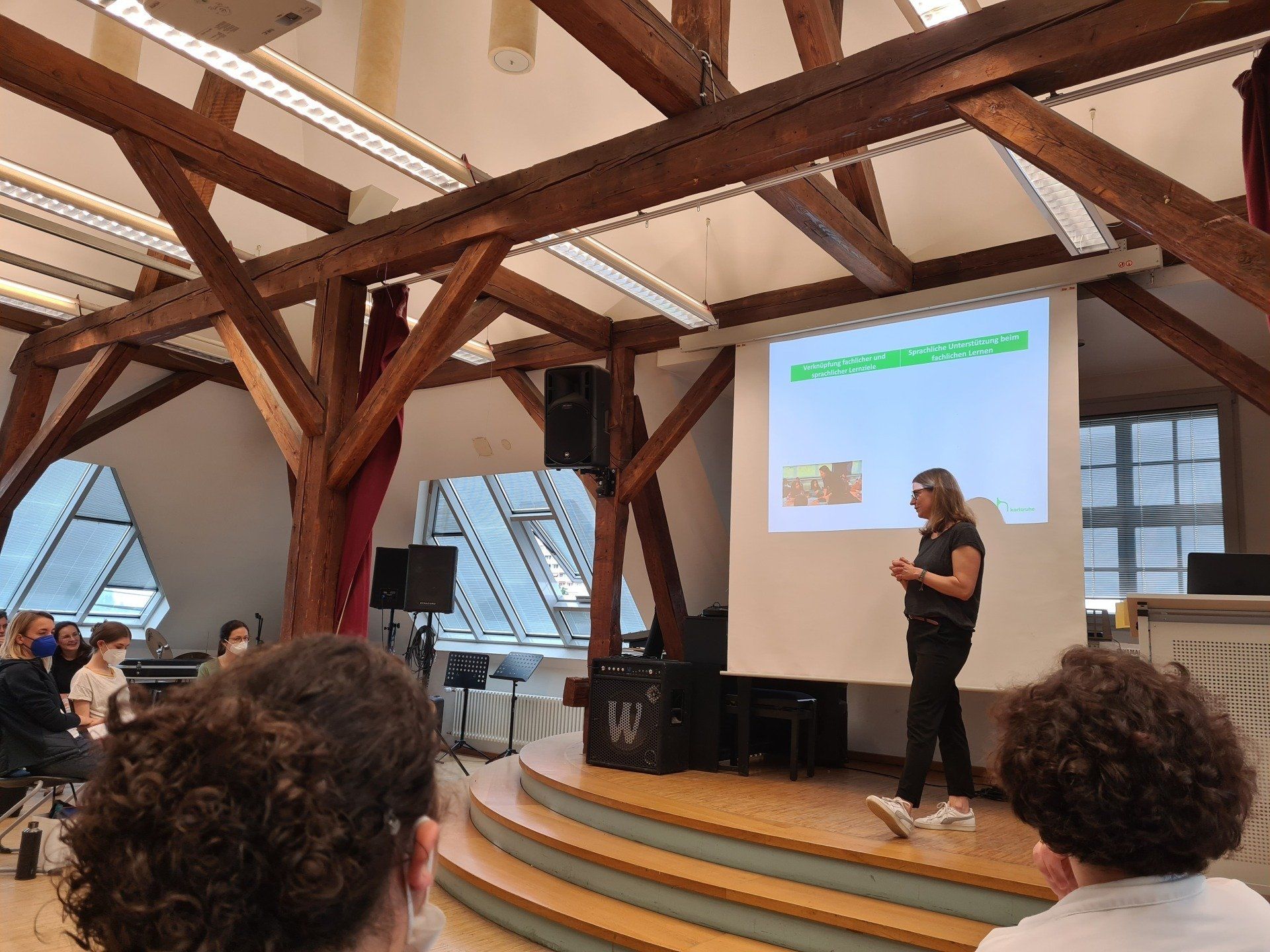 Frau Ute Filsinger von der Pädagogischen Hochschule erarbeitete mit dem Kollegium der Pestalozzischule Möglichkeiten, den Unterricht mit mehr Sensibilität für die sprachlichen Belange der Schüler*innen umzusetzen.