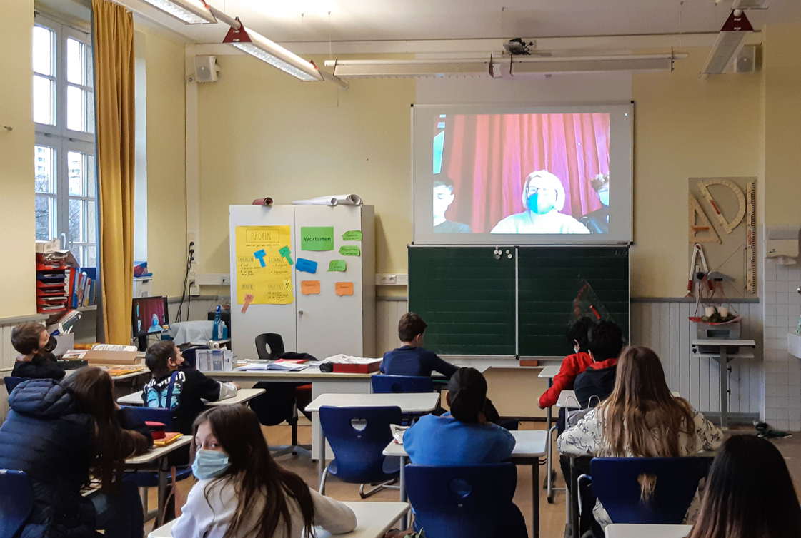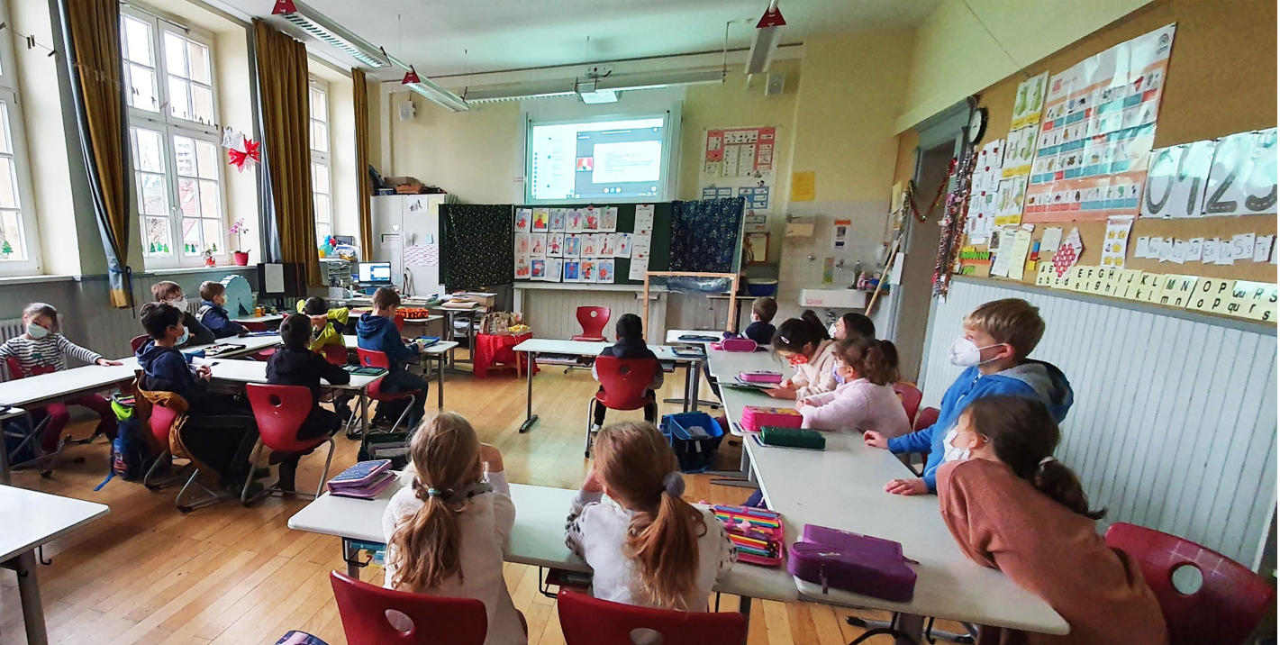 Auch die Grundschüler*innen verfolgen Herr Kühns Rede im eigenen Klassenzimmer mit.