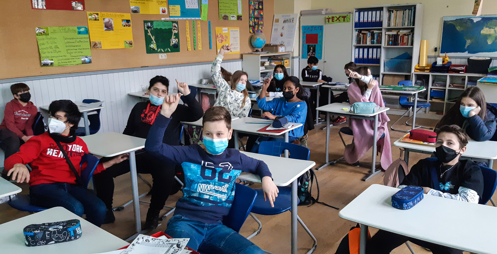 In seiner Rede bedankte sich Herr Kühn bei allen Schülerinnen und Schülern für die Unterstützung bei der gemeinsamen Gestaltung des Schulalltages unter Pandemiebedienungen. Er betonte, dass wir eine Schule ohne Rassismus und mit Courage sind und ermutigte die Schülerinnen und Schüler sich weiterhin gegen Diskriminierung und Fremdenhass zu engagieren. Frau Hammerschmidt bedankte sich in diesem Zusammenhang bei allen Klassen, die diese Woche am Briefmarathon von Amnesty International teilgenommen und Einsatz für mehr Gerechtigkeit weltweit gezeigt haben.