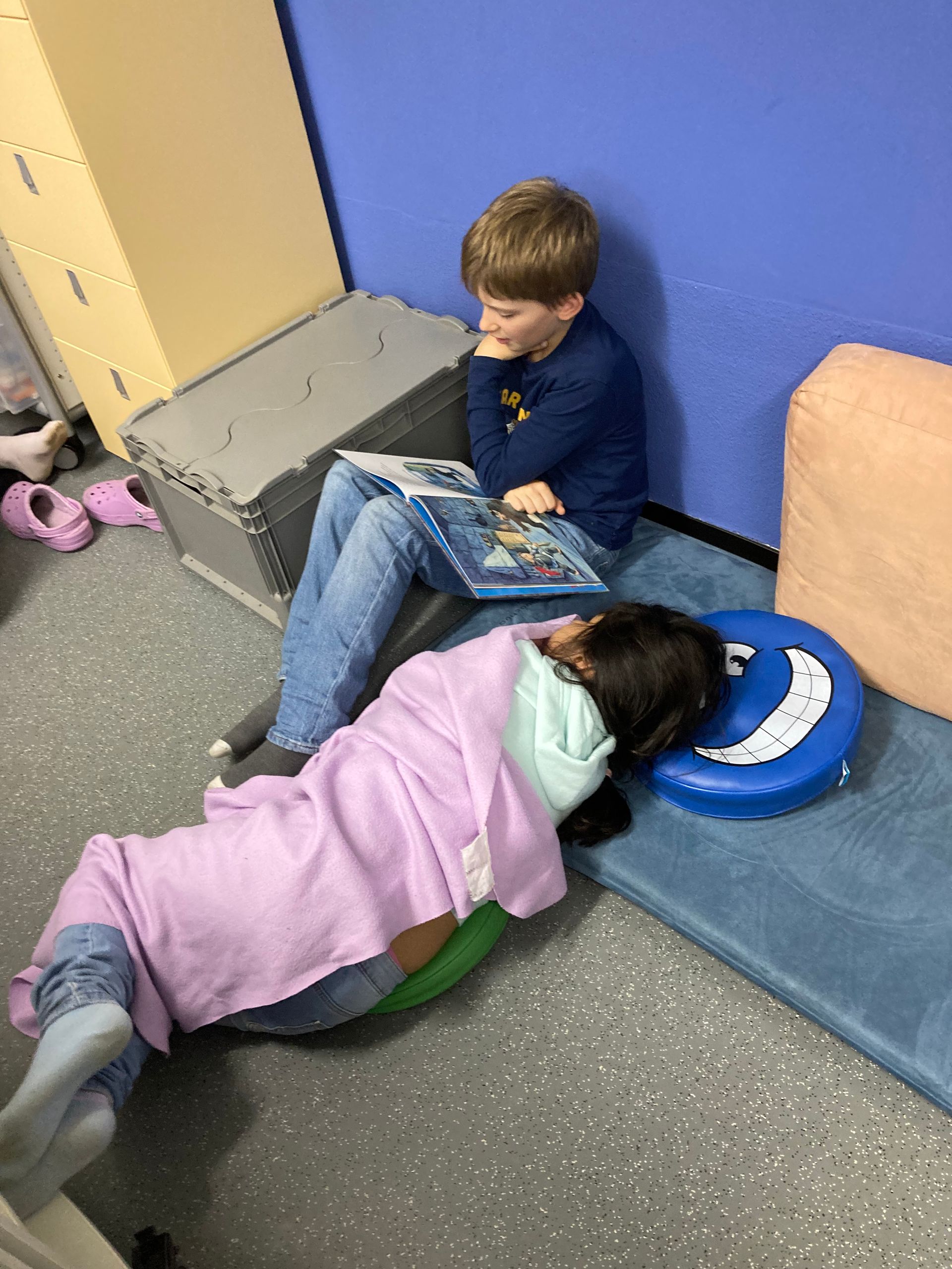 Engagierte 3. und 4. Klässler haben im Rahmen der AG „Lesen“ den Erstklässlern an 2 Nachmittagen altersgerechte Bücher und Geschichten vorgelesen. Die Erstklässler haben gespannt gelauscht. Die AG-Kinder hatten viel Freude am Vorlesen und sind stolz nach Hause gegangen.