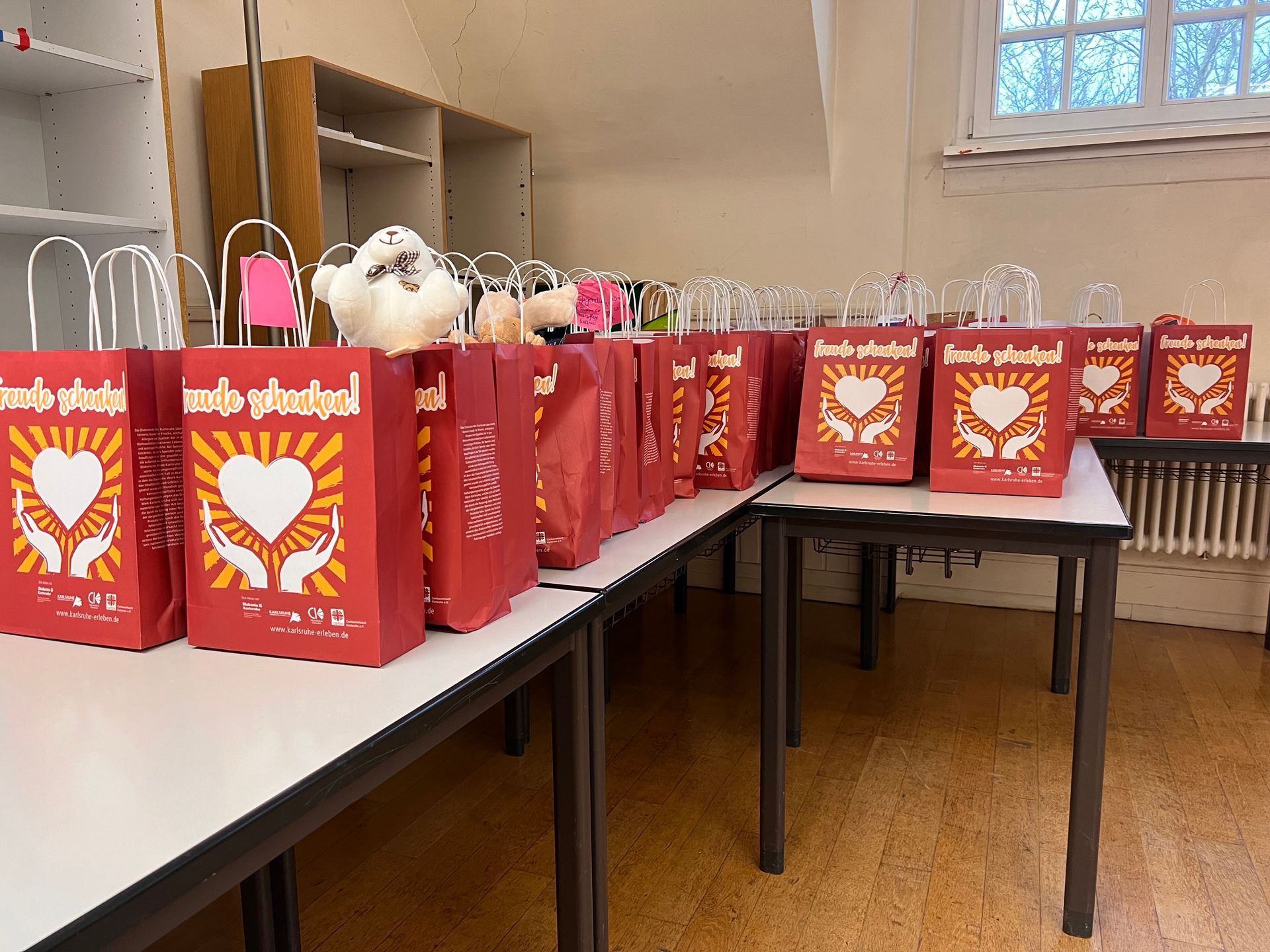 In diesem Jahr nahm die SMV wieder an der Aktion „Freude schenken“ teil. Insgesamt konnten 81 Weihnachtstüten gepackt und gerichtet werden. Vielen Dank an alle, die uns bei dieser tollen Aktion unterstützt haben. Wie in jedem Jahr haben sich die diesjährigen Schülersprecherinnen Soraya und